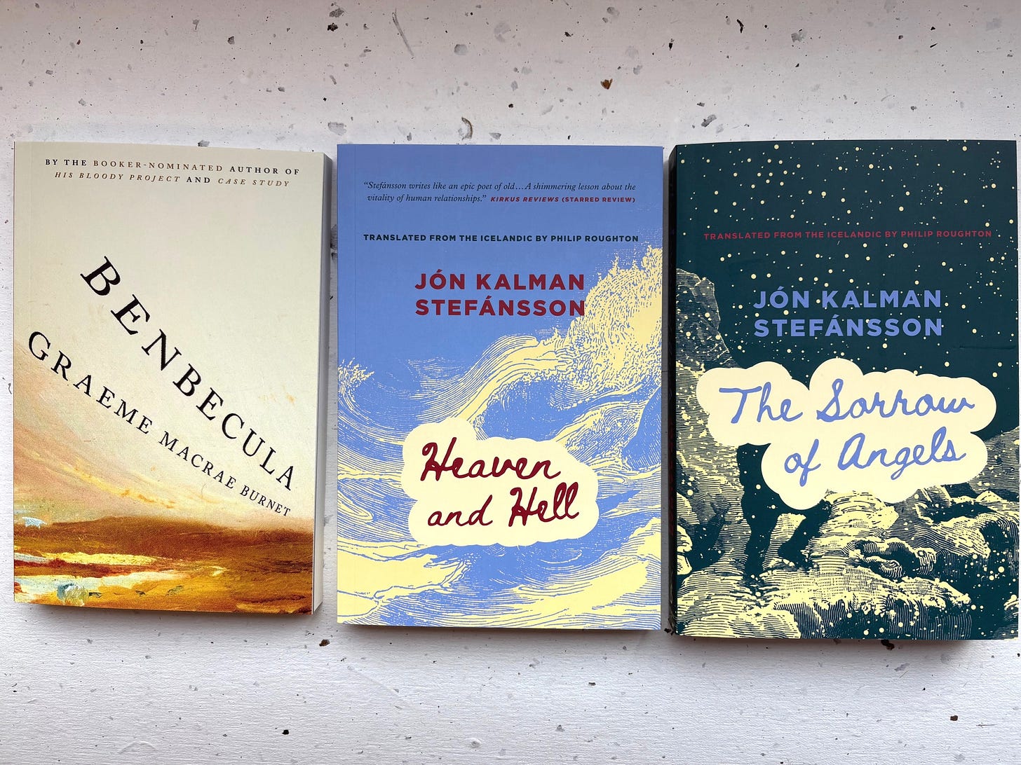 The first two books in Jón Kalman Stefánsson’s Trilogy About the Boy (look out for the third one, The Heart of Man, that’s set to be released June 2026) harkens back to the old Icelandic sagas. It’s the story of an unnamed boy in a remote Icelandic fishing village who loves nothing more than poetry and reading. In the first book, Heaven and Hell, his only friend dies, and he begins a journey that takes him out of the lonely fishing village and into a new community where he finds friendship and hope. The Sorrow of Angels has him embark on a new quest, with an alcoholic, melancholic mailman, across a brutal winter in order to deliver some important mail. It’s the stuff of epic: of men in search of themselves, battling against nature and despair. The whole trilogy is really a testament to the power of literature and the communities found around it. Stefánsson’s voice is absorbing and immersive throughout, and Philip Roughton has done an amazing job translating it into English. I think he’s so unlike any writer I’ve read recently, and to me that is among the highest of compliments. He’s an original, crafting these intense and lovely lyrical, small-scale epics, with wonderfully written character studies. Read him for all the beautiful ways he describes walking through snow.